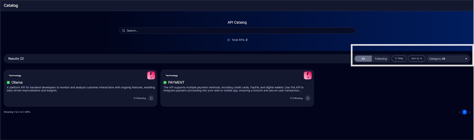 Filter APIs by SDK or environment for more straightforward navigation.