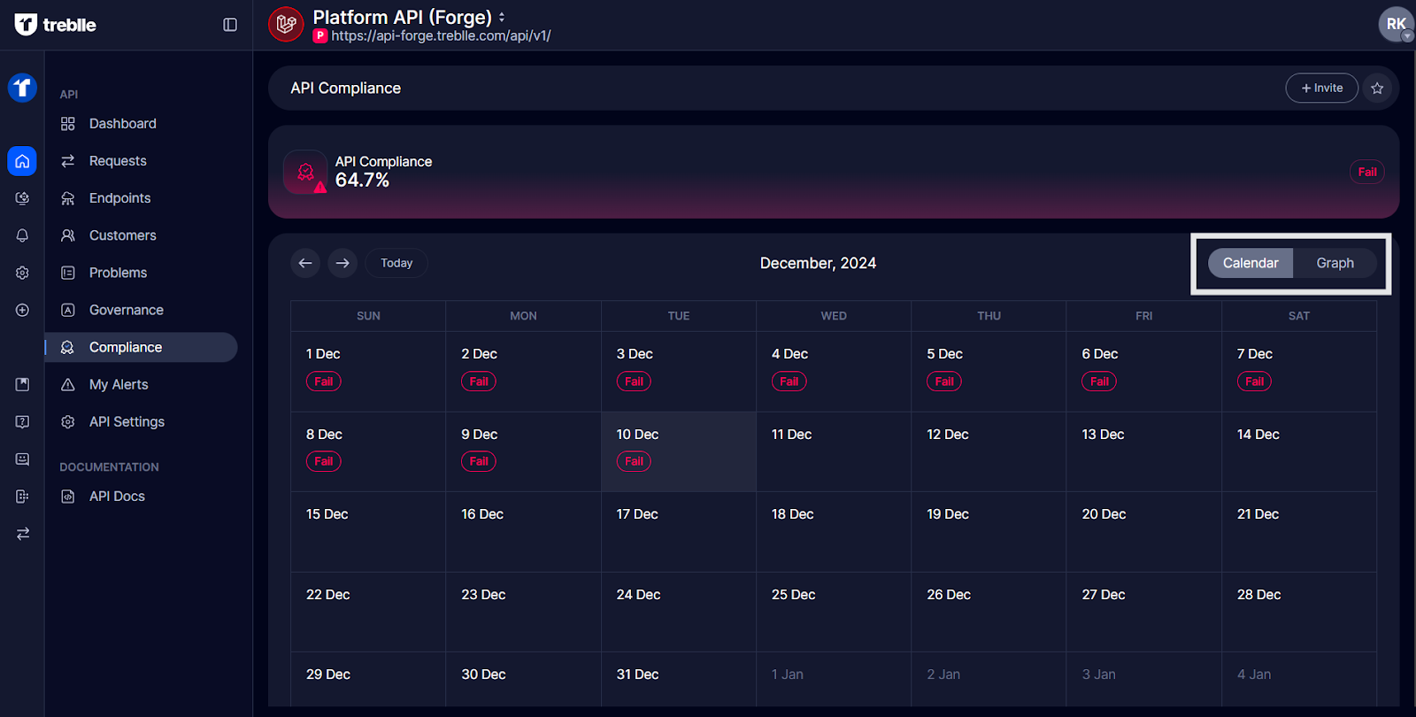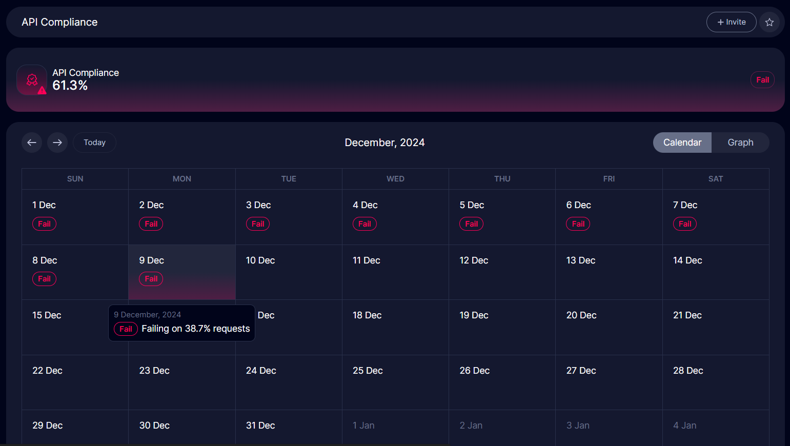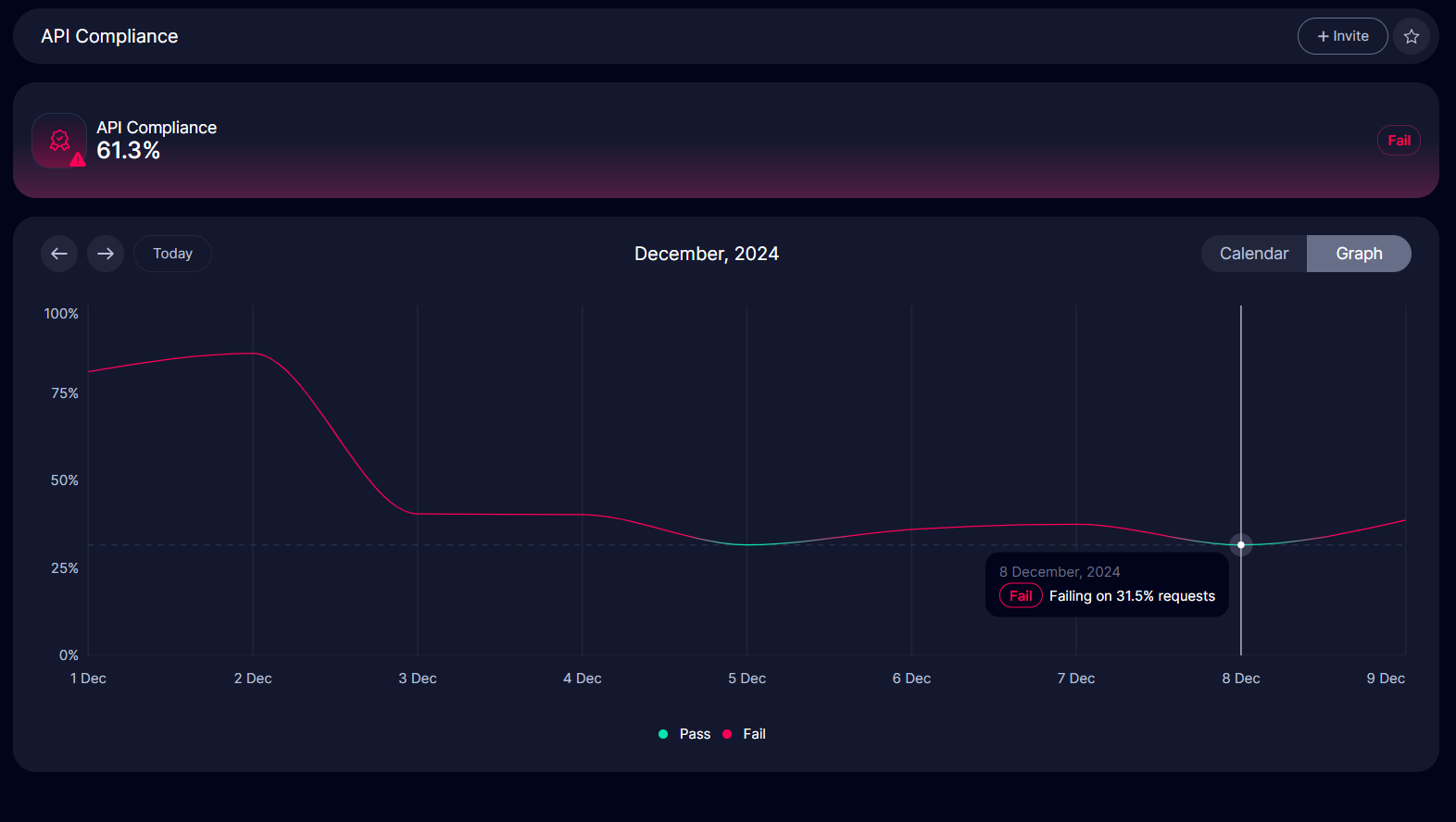Section titled “4. Use the Graph View”- Monitor your API’s compliance trend in the Graph View to spot patterns or improvements.