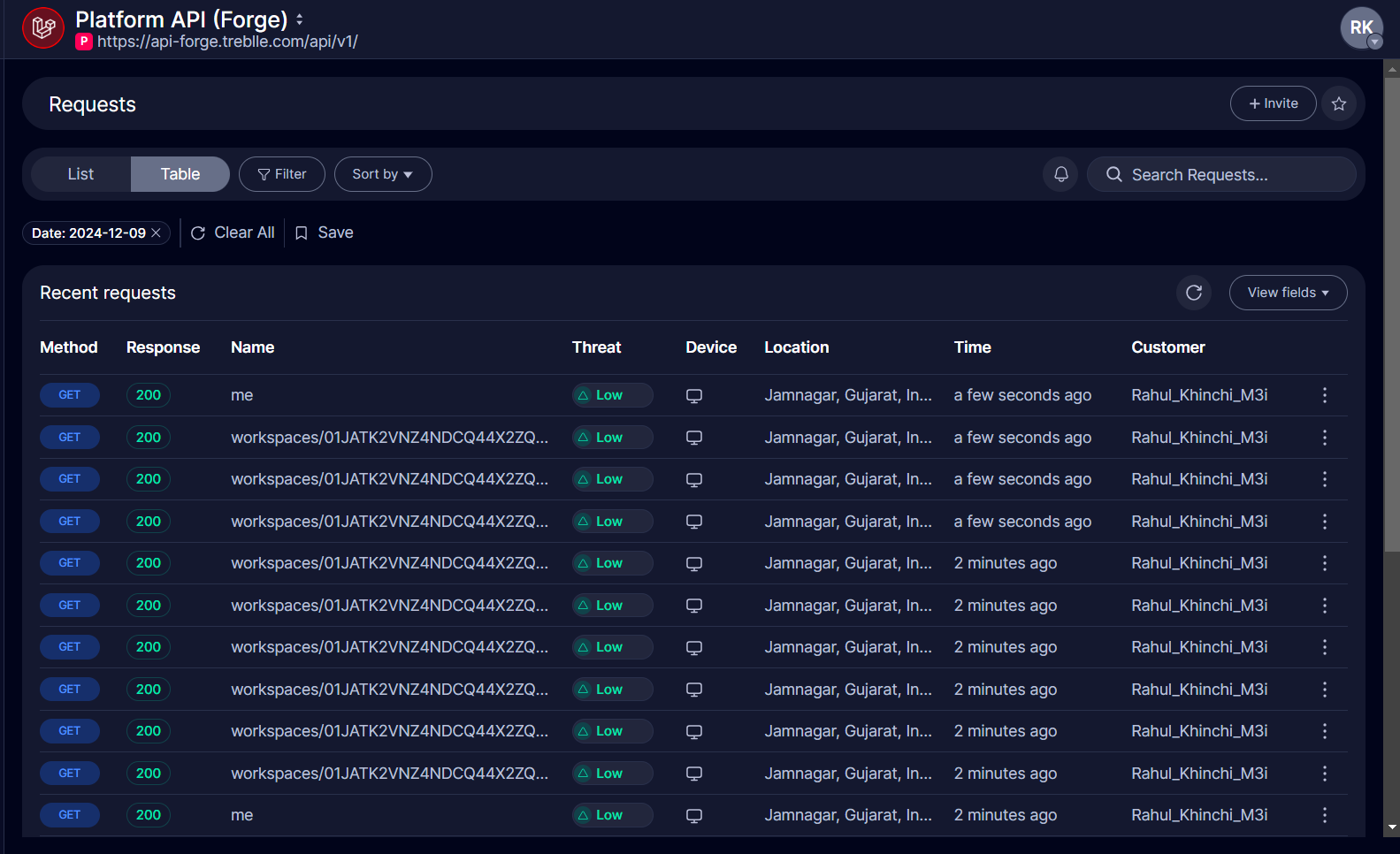 Section titled “1. Check the Dashboard”- After logging into Treblle, go to the Dashboard.