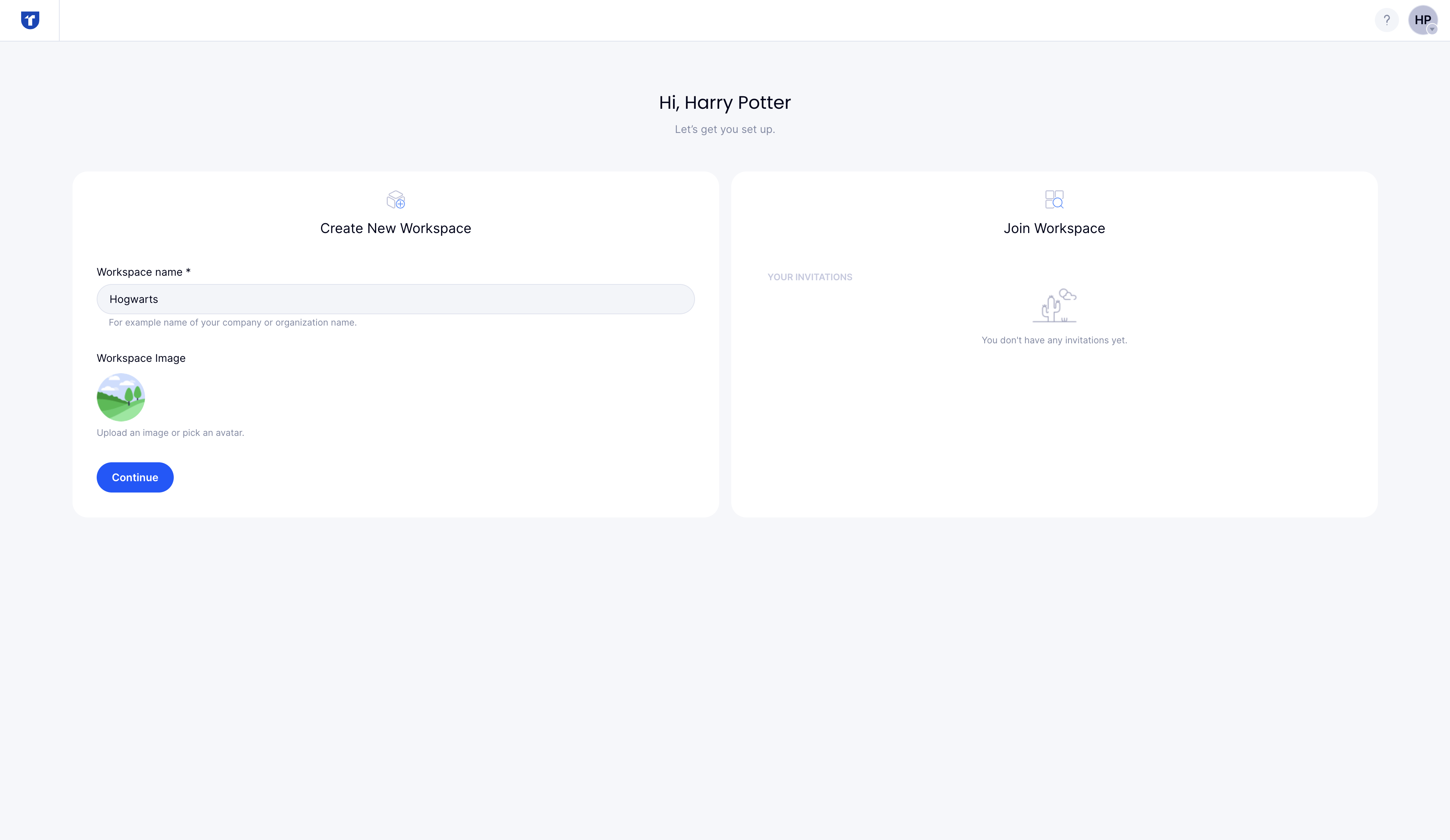 Create a new workspace by clicking on the “Create new workspace” button. You can also join an existing workspace by clicking on the “Join workspace” button.