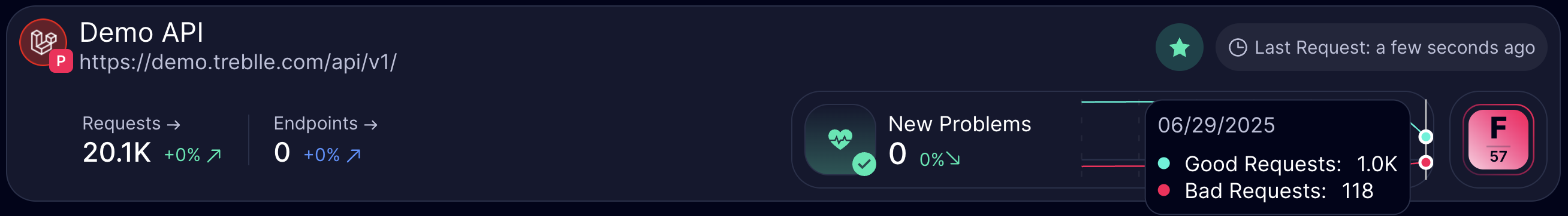 Section titled “Key Highlights”- Requests and Endpoints: See total requests and endpoints per API directly on the dashboard, on every API block. This helps you: