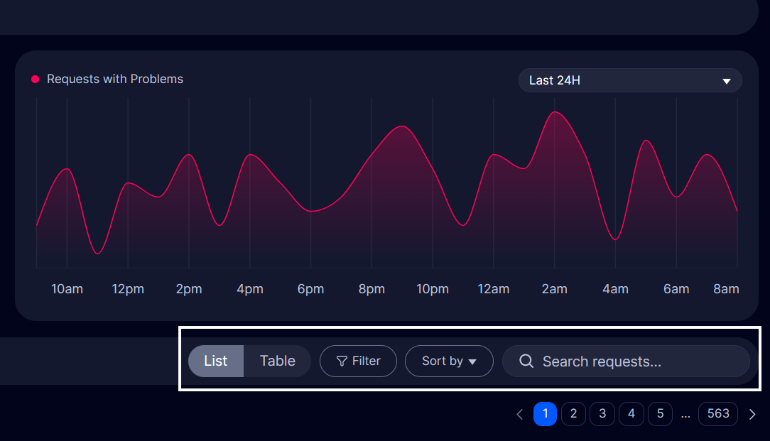 Section titled “Viewing Problems in Requests”To inspect specific requests with problems, you can:
