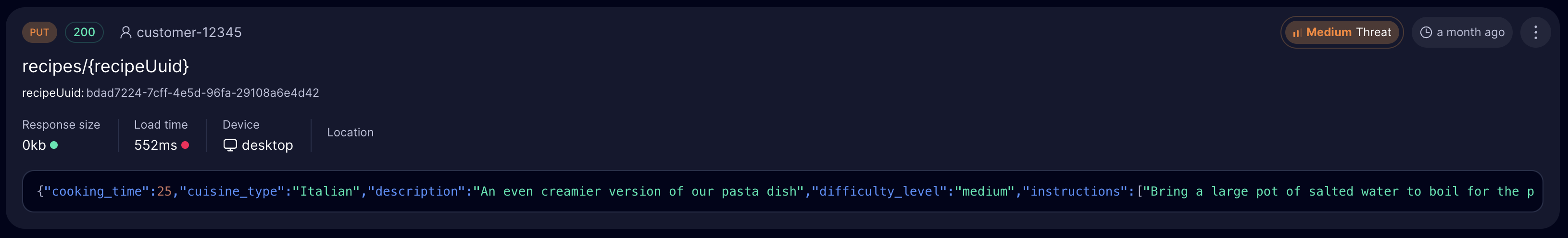- Threat Level: Security assessment indicator (Low, Medium, High) based on request analysis
